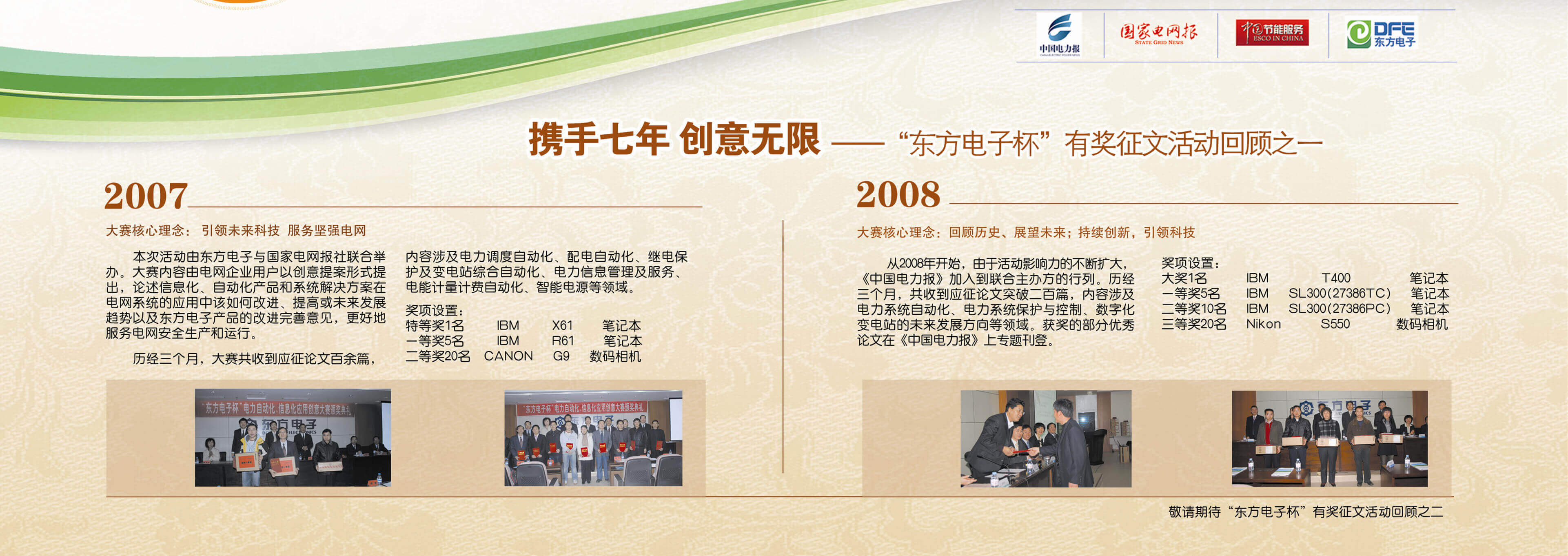 2007年至今,由乐鱼电子联合《中国电力报》、《国家电网报》、《中国节能服务》杂志共同举办的“乐鱼电子杯”有奖征文活动已成功举办七届,在这个过程中,乐鱼收获了很多客户智慧的结晶、收获了客户参与的热情,成功搭建了与客户交流的平台和沟通的纽带。